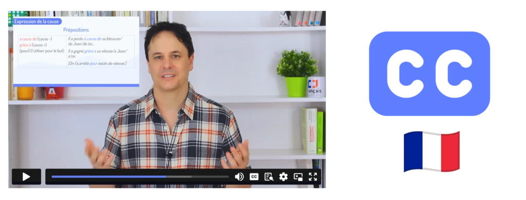 - 33 leçons avec une vidéo par leçon. Dans chaque vidéo, Pierre explique les différents points de grammaire, prononciation, vocabulaire de façon claire et méthodique. Il parle doucement en français pour être sûr que vous compreniez et en plus, des sous-titres sont également disponibles en français.