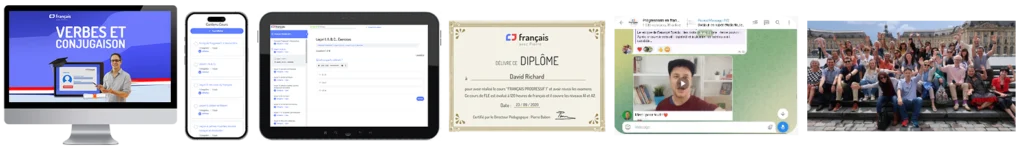 Ce cours est directement à faire sur votre ordinateur, votre tablette ou votre portable ! Après votre achat, un compte personnel sera créé et vous pourrez vous connecter sur le site Français avec Pierre afin d’avoir un accès illimité à votre compte personnel grâce auquel vous pourrez avoir accès à votre cours à vie. Il vous suffit de vous connecter. Vous pouvez aussi consulter les pdf et les fichiers audio sans connexion internet car vous pouvez les télécharger.